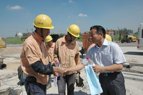 7月27日,市總工會副主席卞正環一行,來到延陵東路供水管線建設工地,走訪慰問在高溫下的一線施工人員,向他們發放了礦泉水、毛巾等消暑用品。卞正環對冒著酷暑、堅守崗位的水務人表示了由衷的敬意,同時要求注意調整作息時間,做好個人防護和防暑降溫工作,確保人身、施工、供水安全。