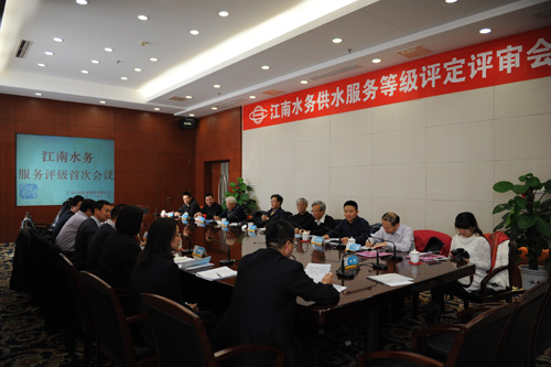 12日上午,供水服務評級首次會議在13樓會議室召開,會上,公司總經理沙建新作了簡短的致辭,他對聯盟專家評審組的到來表示熱烈的歡迎,同時懇請各位專家為企業的服務工作提出意見和建議,為公司打造中小型水務企業標桿出謀劃策,促進提升公司的水務專業服務水平,更好地服務于廣大客戶。公司副總經理吳耀東向評審組簡要介紹了江陰的城市供水現狀,并重點匯報了服務評級工作的自查情況,內容包括用戶服務指標、水質指標、供水能力指標及供水績效指標。
