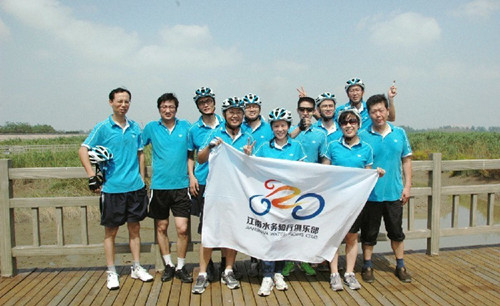 我們是綠色環保的參與者,我們是低碳出行的踐行者,我們是健康生活的倡導者。江南水務騎行興趣小組的成員們——我們的口號是“水韻江南,‘騎’樂無窮!”孟子云,君子有三樂,我們騎行小組也有三樂。