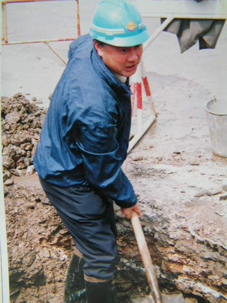 1977年,周松慶進入自來水廠當管道工人,1986年調到自來水搶修這個最艱苦卻又最關鍵的工作崗位當班長。肩負著上級領導的期望和全市人民的重托,周松慶對這項工作絲毫不敢怠慢。一輛自行車,一個工具箱,周松慶踏遍轄區的大街小巷,對水管布局、走向,新增管網的材料數據、安裝方法都詳細了解,爛熟于心。僅僅幾年,他就把聽漏勘察、現場搶修、施工情況,以及自己的思考記滿了整整10本厚厚的筆記本。PPR塑料管夏天溫度不能超過260℃,冬天溫度不能低于300℃;生鐵管搶修不能“引豁”;玻璃鋼管破裂又遇上流沙土的現場施工應急方法等等等等,這密密麻麻的記載是工作的記錄,是經驗的積累,更是一種對這個崗位的高度責任,它是周松慶從一個熟練工走向技術專家和成熟領導的明證。