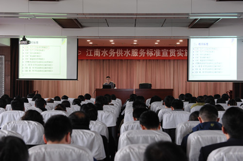 自2013年6月被確定為江蘇省服務業標準化試點項目以來,公司上下統一思想、統籌兼顧落實各項工作,目前已頒布《供水服務標準體系》并進入全面實施評價階段。公司各條線各部門各崗位充分利用標準試點實施的時間,開展形式多樣的貫標達標活動,讓標準理念入心、讓標準規范上手。通過實施--檢查--反饋--修正的流程,建立循環完善的長效機制,使之真正成為公司服務效能持續提升的有力保障,進而促進水務事業的有效發展。下一階段,公司將進一步完成自檢自評自修工作,對照驗收標準,逐條打分,逐項完成,確保供水服務標準化試點工作高規格、高質量通過省級驗收。
