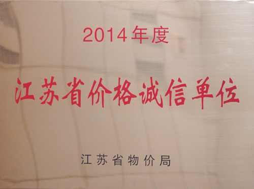 通過(guò)考核認(rèn)定,日前,公司被省物價(jià)局評(píng)為“2014年度江蘇省價(jià)格誠(chéng)信單位”。
