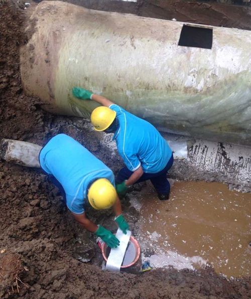 按照“盡快修復,影響范圍最小”的要求,搶修人員先用挖掘機開挖至漏水點附近,再采取人工開挖的辦法搶修漏水部位。為提速施工進度,爭取最短時間恢復通水,現(xiàn)場人員不顧疲勞,站進齊膝深的泥漿中,爭分奪秒,輪流作業(yè),硬是用鐵鍬在管道下方掏出一個修補管道破裂處的作業(yè)空間。清洗、切割、打磨、敷玻璃纖維布……搶修工作有條不紊地進行。經過近23個小時的持續(xù)奮戰(zhàn),終于在次日凌晨2點30分恢復正常供水,比預計時間整整提前了3個小時。