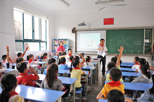 9月25日,市輔延小學三年級1班迎來了一批特殊的客人,只見客人拿出神奇的“道具”給學生們做了水PH值實驗,隨著幾個輕微動作,試杯中的水一眨眼的工夫變了顏色,一會兒又變得清澈,學生們大呼神奇……,這是公司客服中心、澄西水廠、質量管理部工作人員走進校園,在給小學生們上生動的主題班課。