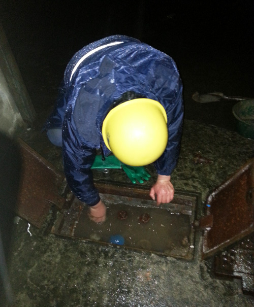天愈發黑了,寒風夾雜著雨點,像小刀似地刮在人的臉上。大家頂著風雨找到了報修用戶的水表總閥,準備關閥搶修。不巧,閥門位置正好位于地面低洼處,已被雨水泥沙堵住了,看不清情況。情況緊急,必須盡快找到閥門。搶修人員跪在地上,脫掉手套,把手伸進冰冷泥濘的表箱中,靠著手的靈敏觸感,很快就找到了閥門,關閉它。