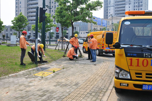 上午9點45分,報修電話響起:“位于澄江路隧道口北的通渡路綠化帶內有大量自來水溢出。”搶修隊接報后快速反應,人員、設備、車輛緊急出動。9點56分,搶修負責人、搶修一班、110聯動搶修車相繼趕到事發地點。經過現場初勘,確認為綠化帶內DN800玻璃鋼管爆管,由于爆漏情況較為嚴重,隨即啟動搶修應急預案。