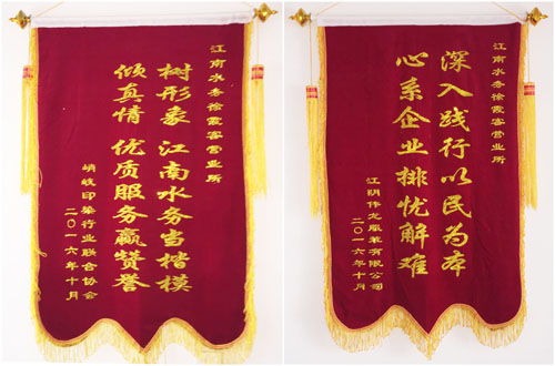 心系企業,贏得贊譽。10月7日,峭岐印染行業聯合協會和偉龍服裝公司送來錦旗,感謝公司主動作為、服務企業,將峭璜路管道與長山大道主管道連接,使峭岐區域形成環狀供水網,有效提升了水壓、水量,保障了用水需求,為企業發展提供了支撐。