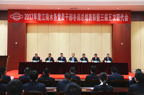 2月2日,公司召開2017年度黨員干部冬訓、總結表彰暨三屆五次職代會。會議由公司副總經理高立主持,總經理華鋒作題為《不忘初心 不負未來 勠力同心開創水務事業新局面》的工作報告,公司黨委書記、董事長龔國賢作冬訓動員講話。