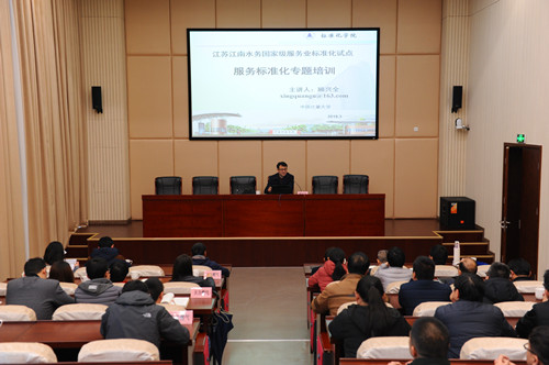 3月7日下午,在江南水務(wù)階梯教室內(nèi)來自天力燃?xì)狻⑿煜伎玩?zhèn)政府、江陰質(zhì)監(jiān)局、江南水務(wù)各部門的100余名人員共聚一堂,參加服務(wù)標(biāo)準(zhǔn)化專題培訓(xùn)活動。此次培訓(xùn)特邀中國計量大學(xué)標(biāo)準(zhǔn)化學(xué)院院長顧全興教授做學(xué)術(shù)報告,共同分享標(biāo)準(zhǔn)化實踐中的成果與經(jīng)驗。