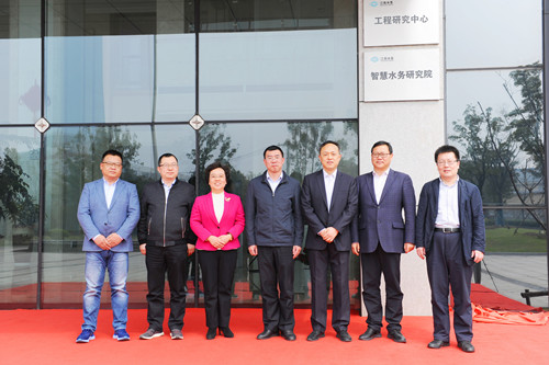 3月28日,江南水務智慧水務研究院正式揭牌成立。省供水保障中心主任林國峰,哈工大環境學院副院長南軍,市科技局、工業和信息化局、科協的相關領導和專家,公司董事長龔國賢、總經理華鋒等參加智慧水務研究院成立座談會和揭牌儀式。林國峰和南軍為智慧水務研究院揭牌。華鋒主持會議及儀式。