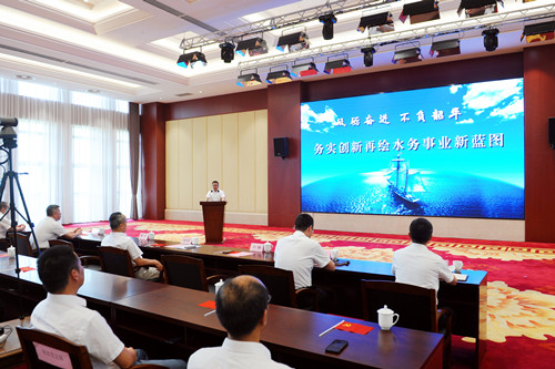 公司董事長、總經理華鋒作題為《砥礪奮進 不負韶華——務實創新再繪水務事業新藍圖》的半年度工作報告。他指出,2020年是高水平全面建成小康社會之年,是“十三五”規劃收官之年,也是我市“六攻堅六突破”三年行動起步之年。上半年,面對國內外疫情的沖擊影響,公司在市委市政府的正確領導下,緊緊圍繞董事會確定的年度目標任務,聚團結之力,行務實之舉,一手抓防控,一手抓發展,各項工作保持了平穩的發展勢頭。一、一以貫之,聚力優質供水高質量。牢守主陣地,提升供水管理水平;掌握主動性,提升質量管理標準;瞄準主方向,提升供水服務效率。二、鍥而不舍,統籌重點工作高質量。試點鰣魚港路污水管道非開挖修復施工工程;建立培訓和后備人才培養體系;制定《標后管理制度》;完成肖山、澄西水廠深度處理工程65%的工程量;編制完成老舊管網改造決策辦法初稿;制定二次供水設備全生命周期管理辦法;建立水量變化、漏損監測體系;獲得專利3項、軟件著作權1項等。三、咬定目標,深耕排水管理高質量。按照規范要求,運行維護南閘街道、徐霞客鎮、敔山灣等區域共計637公里排水管網、124座污水泵站,完成清疏管網352.9公里,清掏15829座污水檢查井、雨水箅。四、持之以恒,壓實安全管理高質量。織密排查網,疫情防控常態化;織密安全網,應急管理全覆蓋。五、一絲不茍,彰顯內控管理高質量。完善和優化內控手冊,進一步規范內控體系;完善合同管理,控制合同風險。六、馳而不息,融入文化建設高質量。堅持初心不改,舉旗幟;堅持以人為本,聚民心。