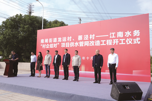 10月20日上午,南閘街道龍運村、蔡涇村供水管網改造工程開工儀式在龍運村順利舉行,江陰市委常委、市紀委書記、監委主任靳佳高,南閘街道黨工委書記李志浩、辦事處主任袁飛和副主任楊迎彬,江南水務董事長、總經理華鋒和副總經理曾武及市政工程公司總經理顧忠,市公用事業服務中心副主任張琦,南閘龍運村黨總支書記蔣中平、蔡涇村黨總支書記薛建忠出席開工儀式。